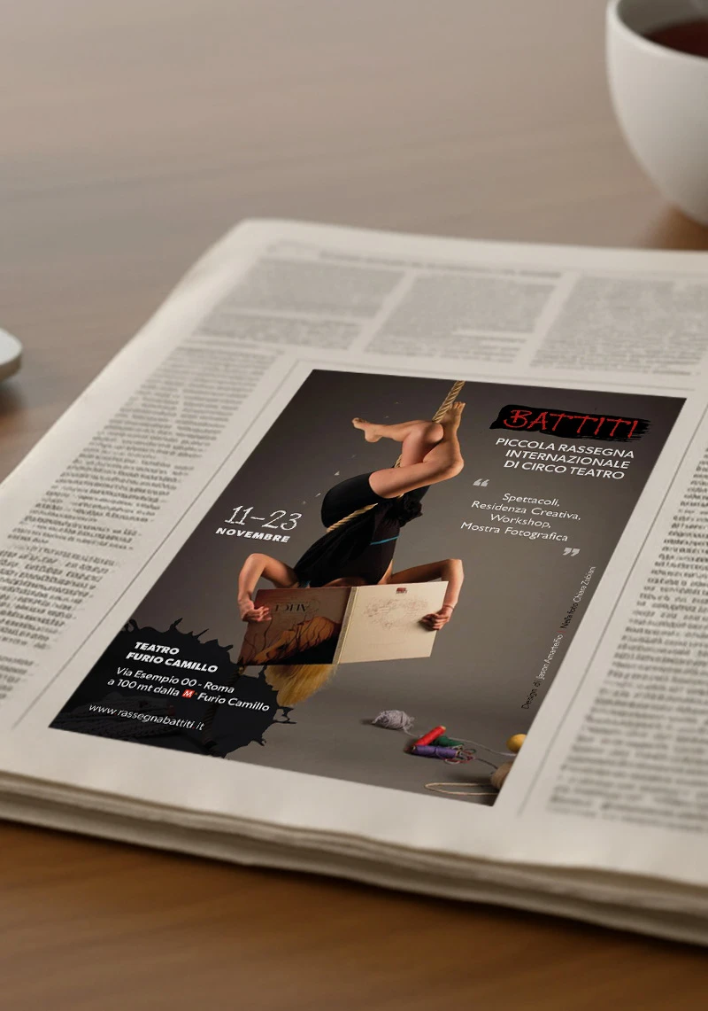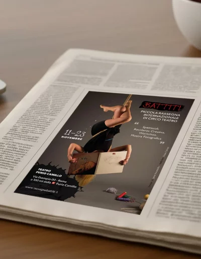 Battiti Festival is an internationally recognised event organised by Teatro Furio Camillo in Rome. It showcased dynamic performances by circus artists worldwide, blending contemporary scenic arts with workshops that encouraged creativity and skill development. In 2014, during my 3-month Leonardo da Vinci Work Scholarship, as a Graphic Designer in Italy. I worked on various print design projects.