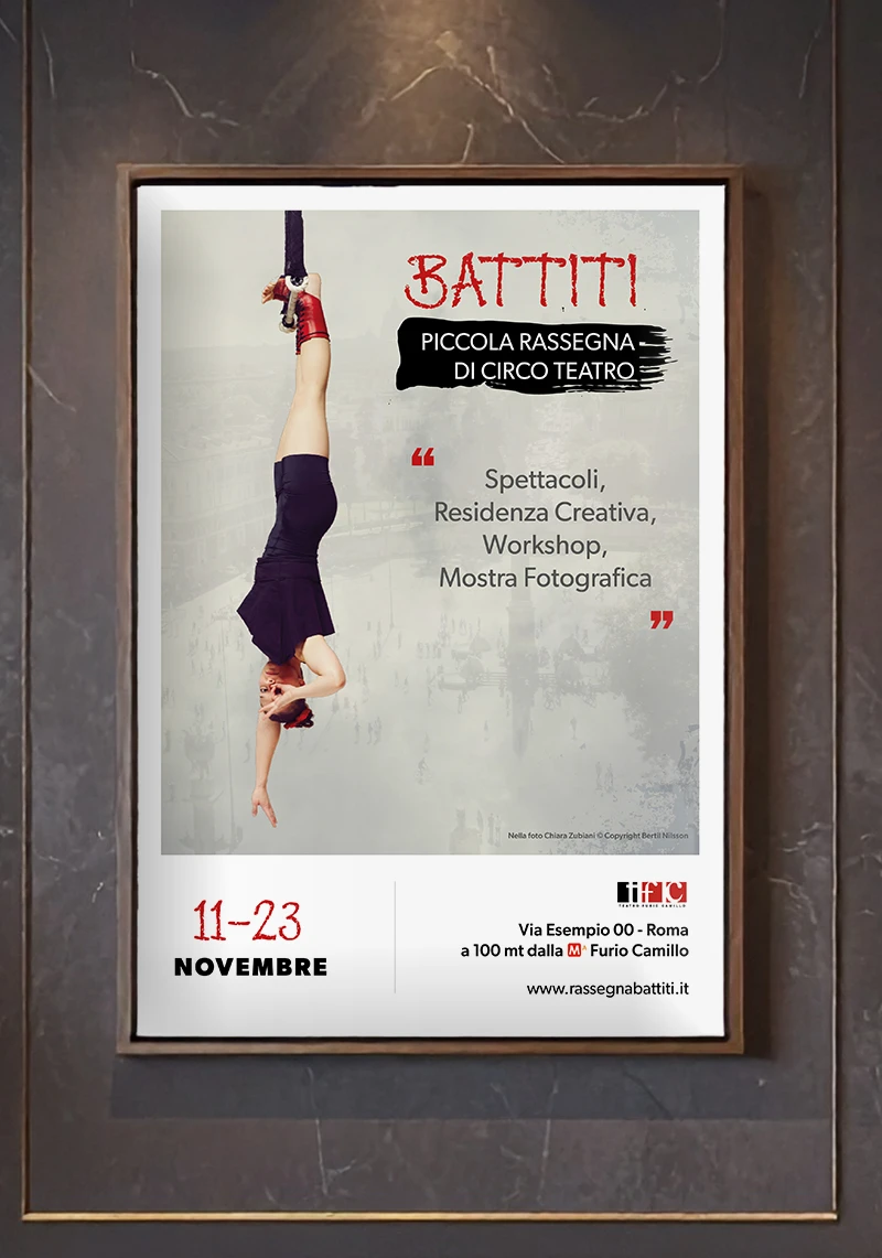The Challenge: I created promotional materials showcasing Italian performances and workshops. As the Co-Artistic Director spoke only Italian, I navigated the language barrier through visual problem-solving, .