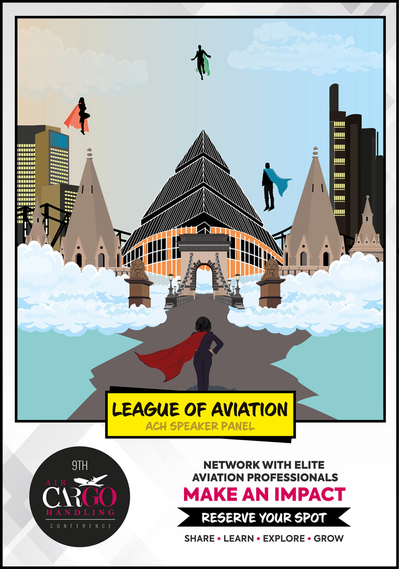 League of Aviation was a social media campaign I created to promote the Q&A panel at an Air Cargo Handling Conference in Budapest. The panel featured industry leaders who serve as role models to many. Inspired by the idea that role models are like superheroes, I designed comic-style illustrations of the speakers. I also created the print and promotional materials for the conference as the event graphic designer. This case study presents a redesign of the campaign, updating visuals and concept while keeping the event’s authentic context.